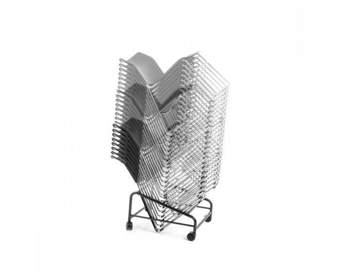 -CS One Stacking: Nested stacks 10 high on the floor, 30 on a -trolley (15 with seat pad) for efficient storage and transport