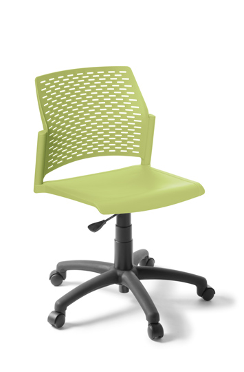 Heavy duty community seating with fashionable perforated backrest styling.