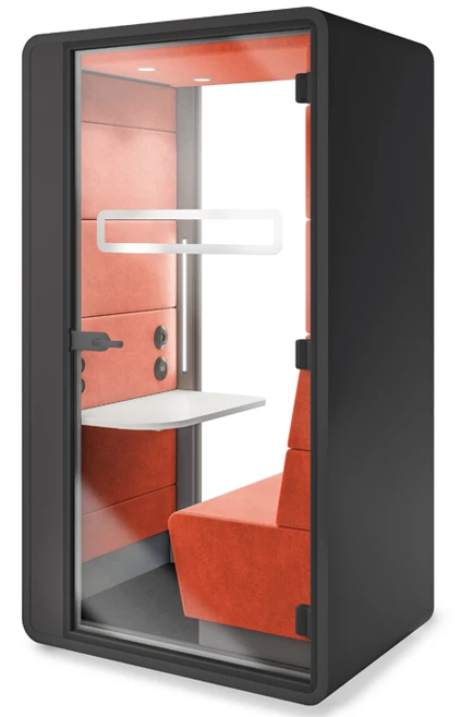 The soundproofed, collaborative small office booths from Hushoffice provides the ideal acoustic environment for teams to hold vibrant, energised meetings without concern over bothering colleagues. These portable office booths are ideal for two people.