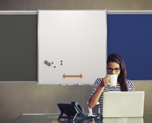 Ergo Rail is a wall mounted rail from which any Porcelain Whiteboard or custom fabric Pinboard can be suspended. The board can slide along the rail, or can be moved to another area that has Ergo Rail.
